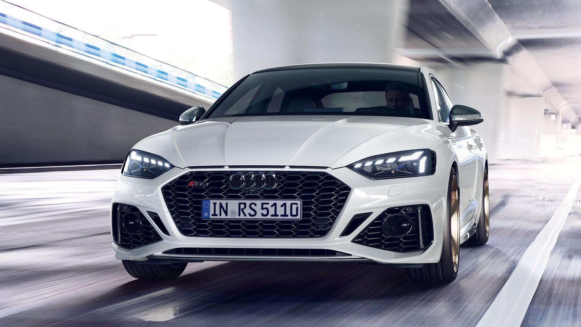 Fuel consumption combined: 9.2 l/100 km CO₂ emissions combined: 209 g/km The Audi RS 5 Sportback* is more than a sporty vehicle: experience premium functionality, comfort and dynamism. Striking design elements promise ultimate sportiness that you can confidently bring to the road with the powerful 2.9-litre TFSI twin-turbo V6 engine and quattro all-wheel drive.